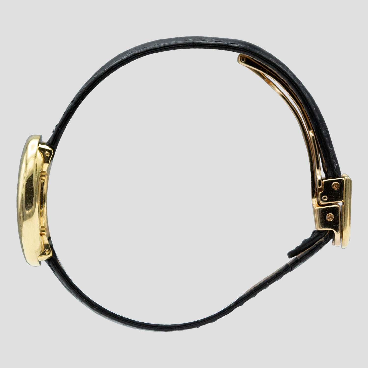 MATERIAL: Eighteen carat yellow gold with a black alligator strap and gold deployant clasp