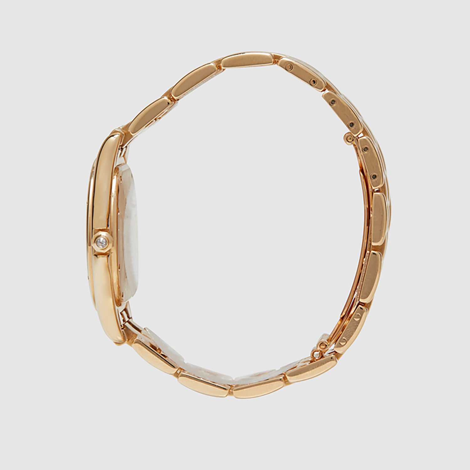As mentioned, the bracelet, in solid eighteen carat yellow gold, is the same one used on the Panthère – only this time has a rounded end link fitting flush into the case. It has the classic double opening deployant system, which was used throughout the Cartier line at this time. A number of the links have small gold screws in the sides which allow them to be added or removed.