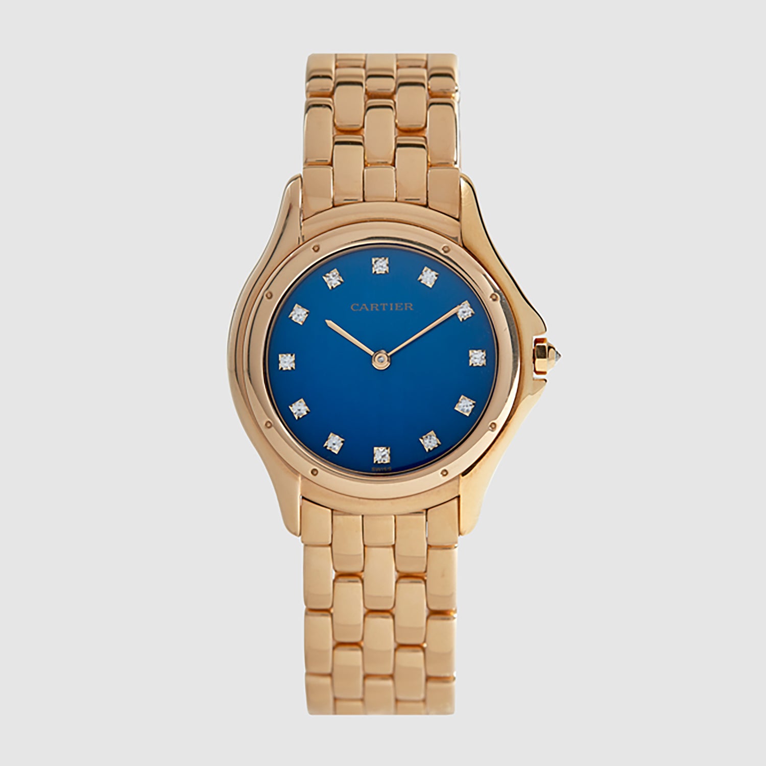 OMG, the Cougar! Pt. II. This is the daddy version. This watch was launched by Cartier in 1989, about a decade before the term “Cougar” was used to refer to women like Stifler’s mom. Rather, its name derives Cartier’s long standing fascination with the sleek, feline form. The Cougar came hot off the heels of the Panthère (released in 1985), offering a variation on the now-iconic model. This lesser known watch is charming in its own right with the blue enamel rounded dial and diamond markers. Bold and captivating, it’s a gorg alternative for those looking to veer away from the popular Panthère and plot their own path toward it-girldom.