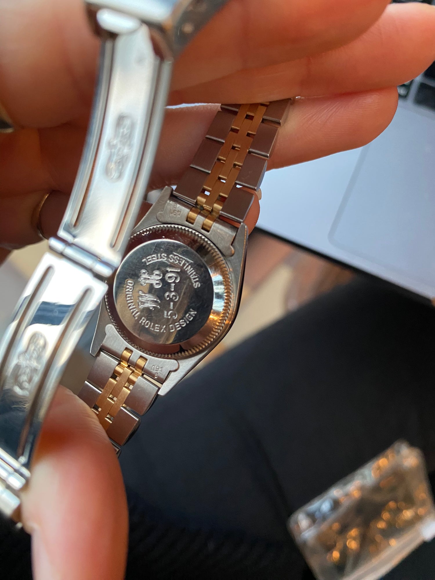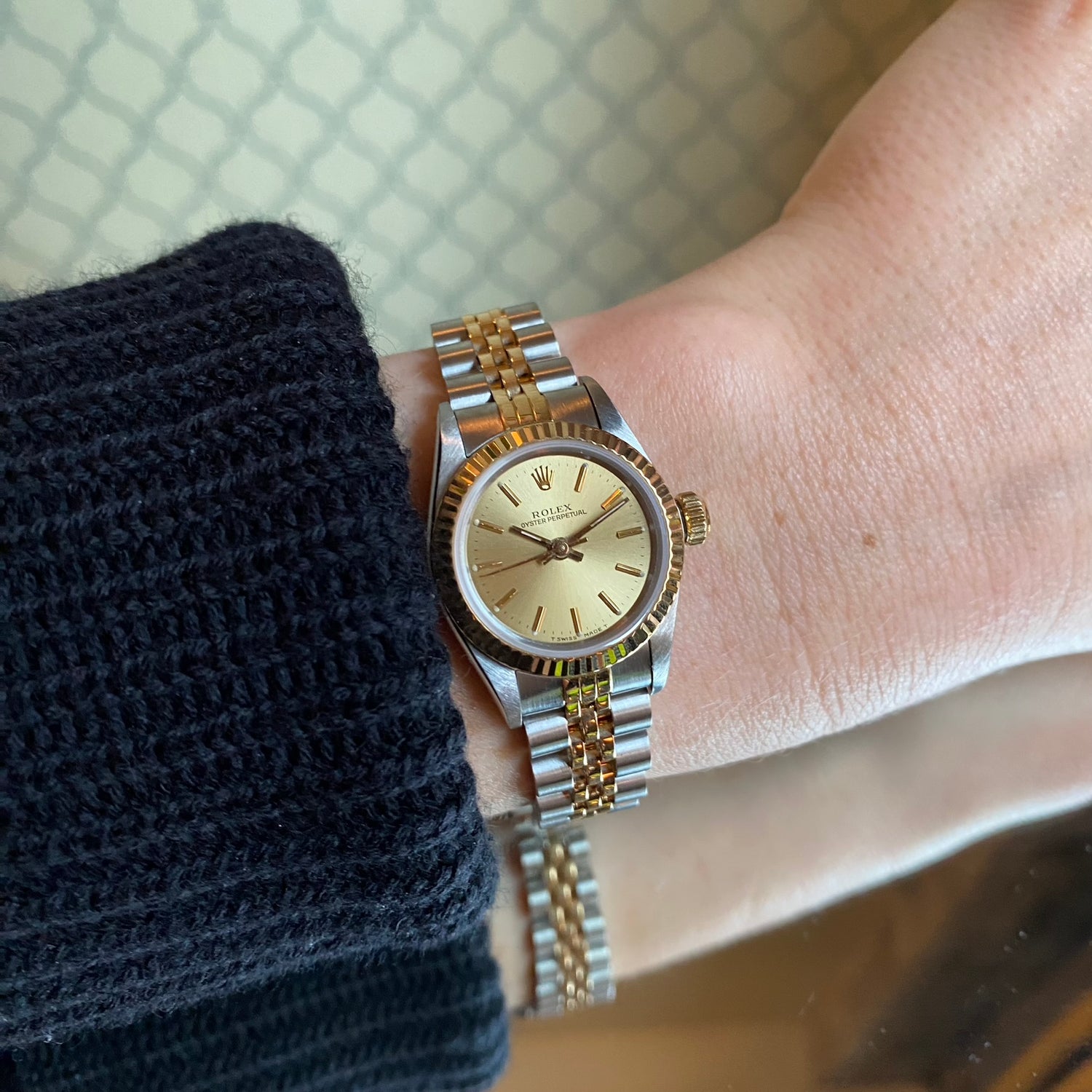 This watch is a great watch in so many ways. For those that do not need, and/or like, the date busying up the dial (with its cyclops bubble distorting the crystal), this dateless version of the TTTTRDJ (Teeny Tiny Two Tone Rolex Datejust) is a simple and chic accessory on the wrist.