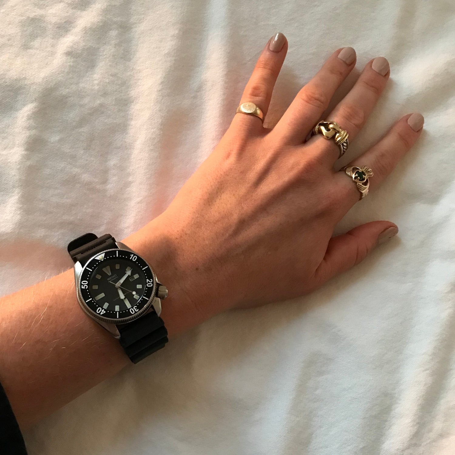 BB SEIKO DIVER! This piece (almost to a tee) was my first-ever mechanical watch. 'Twas with this beloved "ladies" diver that I learned how to wind a watch, set the time and date, and discovered my own body's power to keep it moving. I'm obsessed with this piece because of its size, its durability (she has weathered swims in both the Atlantic and Pacific) and history (see the "nitty gritty" below). This watch is shockingly chic. I wore it with a Polo button down, blue jeans, and my Gucci loafers to dinner in Martha's Vineyard, feeling like an old money preppy yacht-enthusiast who couldn't be bothered to pack a Rolly in his summer bag.